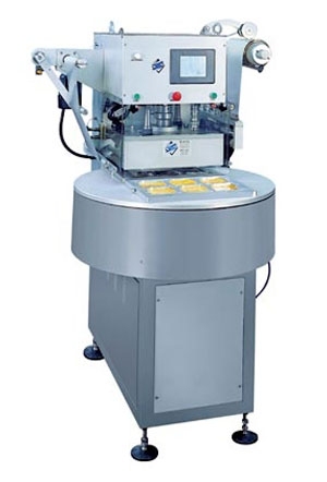 Опаковъчна машина за затваряне на хранителни продукти във вакуум и защитна атмосфера. SRA 2SM е ротационна машина с една въртящи се платформа и два зареждащи се работни плота. Докато единият работен плот е под матрицата, където се извършва цикъла: вакуум, газ, термозаваряване - се отстраняват вече направените опаковки от предишния цикъл и се зареждат нови. Контролният панел е интуитивен и е на 6 езика, включително и български. Машината се доставя с различни матрици, които се изработват в SIATE. Смяната на матрицата се извършва за една минута, без да се изчаква нейното охлаждане. Преминаването от един формат към друг е само за една минута. Алуминиевата тефлонирана матрица с изрязване на фолиото по контур на чинийката. Изработена по стандарти на ЕС.